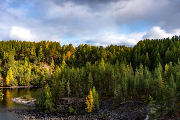 Дальше наш путь лежит к вулкану Гирвас — уникальному по своей красоте природному объекту. Он жил более полутора миллиардов лет назад. Здесь и застывшая лава, и горные породы, и песчаные дюны, и густые сосновые боры. Если повезет, вы попадете на спуск воды из водохранилища и увидите потрясающее зрелище — водопад Гирвас.
