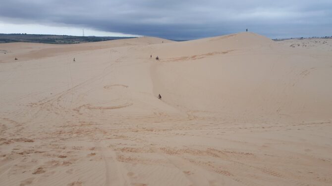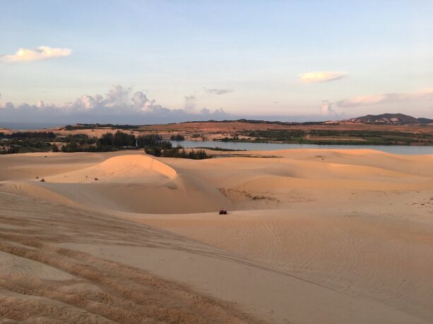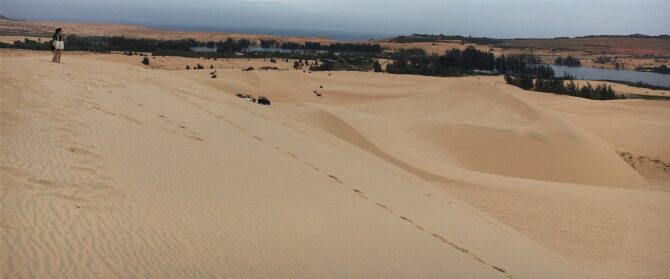 Примерно в 30 км к северо-западу от Фантхьета находится природный объект, напоминающий кусочек Сахары. Белые дюны покрыты мягким светлым песком. Протяженность «пустыни» – около 10 км. Высота дюн – от 70 до 80 м. Рядом находятся прокатные конторы, в которых можно арендовать квадроцикл, чтобы принять участие в 30-минутном сафари. Стоимость услуги – 1 млн донгов. Прокатные конторы работают с 4:30 до 19:00.