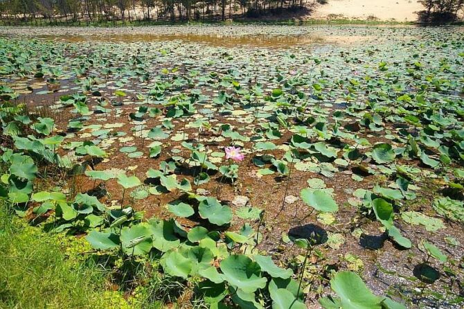 Путь к озеру Лотосов совпадает с маршрутом, ведущим к Белым дюнам. Туристы обычно приезжают к водоему с начала июля и до середины сентября, когда можно оценить красоту цветов. Доступ к водоему свободный.