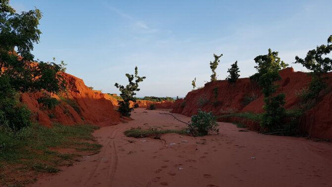 Любителям фотосессий и красивых природных ландшафтов непременно стоит побывать в живописном месте, расположенном примерно в 7 км от центра Фантхьета. Здесь простираются «владения» Красных дюн, похожих на небольшую песчаную пустыню на окраине города. Чуть южнее проходит дорога DT716.