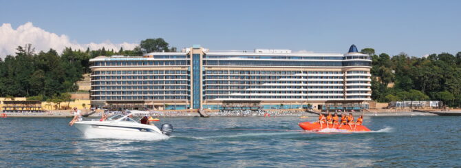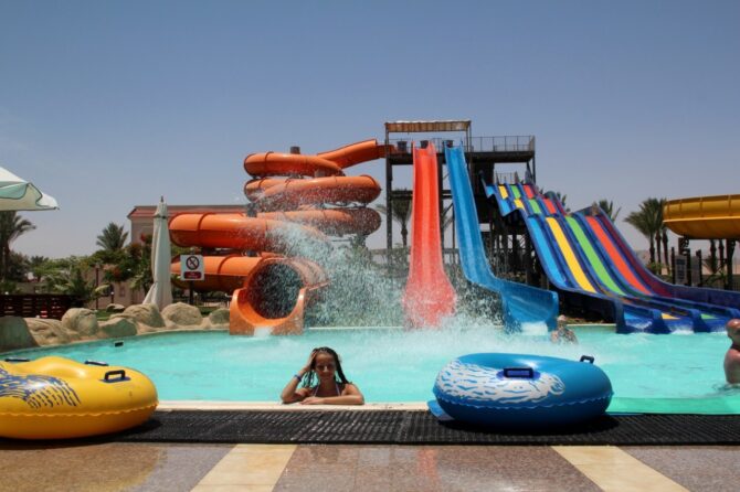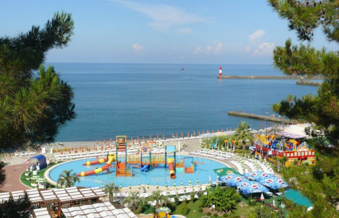 Места тут хватит, хотя его и меньше, чем на Ривьере. Пляж тянется на целых пять сотен метров, и ширина у него достаточная. Купаться безопасно как взрослым, так и детям – дно лишено ям, а глубина нарастает постепенно. Количество всяких аттракционов тоже радует, а главным из них является аквапарк.
