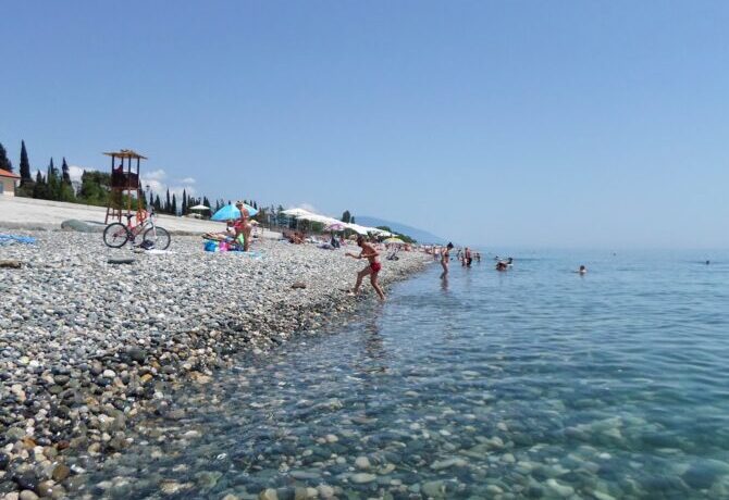 «Галька на пляже слишком уж крупная! Ходить неудобно. Но в целом пляж замечательный, хотя с детьми на гальке могут быть проблемы».