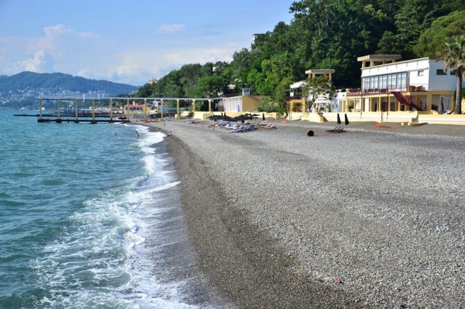 Для тех, кто в городе Сочи отдыхает впервые, и привык к пляжам речным, покрытое мелкой галькой побережье может показаться неуютным. На первый взгляд кажется, что ходить по камням будет трудно, и хочется найти старый добрый песок. Однако опасения быстро проходят. Галькой действительно занесена большая часть берегов, но камешки эти гладкие. Кроме того, такой пляж сохраняет чистоту лучше песчаного.