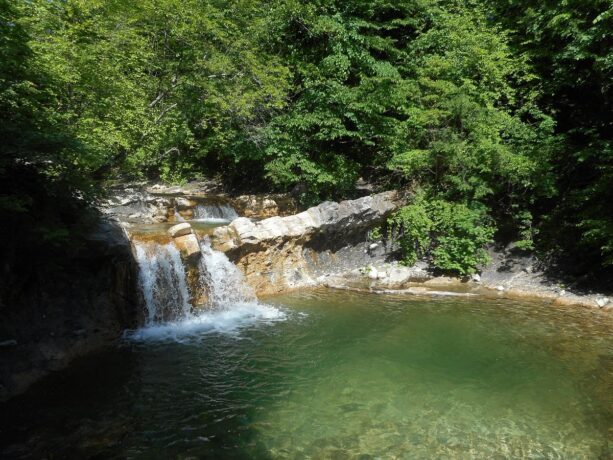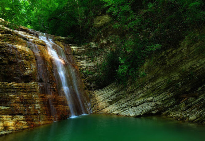 Долина водопадов – один из самых популярных туристических маршрутов в Геленджике. Достопримечательность находится в горном районе Плесецкая щель в 25 км от города. Никто точно не считал, сколько водоскатов расположено на горной реке Тхаб. Гиды уверены, что их более сотни. Около 20 из них довольно крупные, достигающие 15 метров в высоту. Если пройти вдоль русла, то можно встретить многочисленные 2-3 метровые каскады. Природа здесь уникальна по своей красоте. Скалы покрыты яркой растительностью, вода изумрудного цвета образует в каменных чашах купели. В некоторых из них можно купаться. Глубина не превышает 3-х метров. Также имеются мелководные участки глубиной до 1 метра.