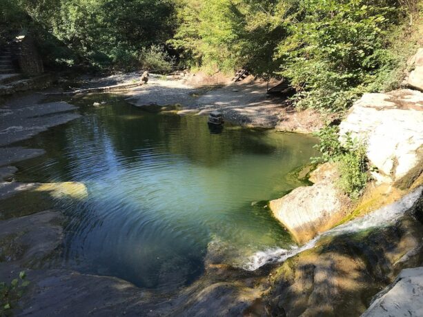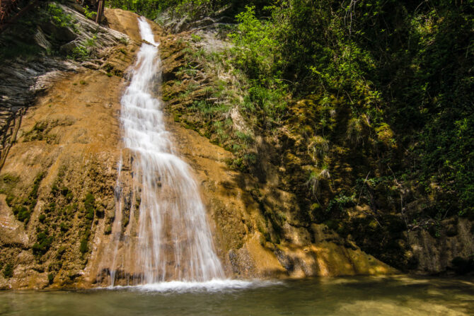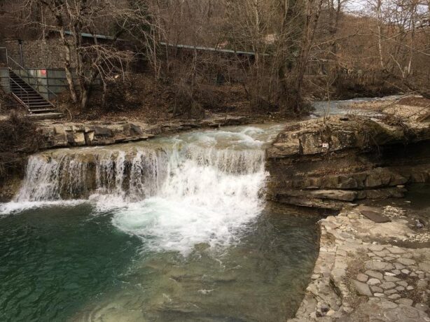 Водопад слышно издалека. Он предстает во всей красе, стекая по каменному руслу среди поросших растительностью склонов. У самого подножия вода скапливается в небольшой чаше, но купаться здесь не рекомендуется. Горный поток имеет быстрое течение, а на камнях можно поскользнуться. Вход на территорию свободный.