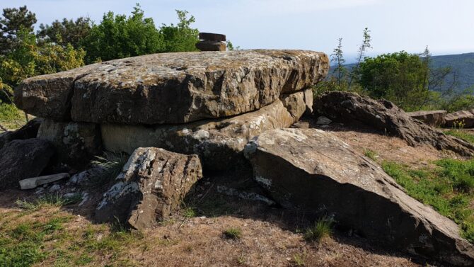 В советское время на гору Нексис обратили внимание геологи. Здесь решили устроить разработку мергеля. За забором якобы начались строительные работы, но «посвященные в таинство дольменов» считают, что советские ученые использовали добычу ископаемых как прикрытие. На самом деле они искали ответы на многочисленные мистические явления, периодически возникающие в этом месте. С дореволюционных эпох сохранился ритуал строительства каменных пирамидок. Человек выкладывает столько камней, сколько ему лет. Затем обходит башенку по часовой стрелке, ни с кем при этом не разговаривая. Считается, что камни заберут из тела все болезни. При осмотре достопримечательности нужно осторожно обходить чужие башенки. Дольмен прекрасно сохранился и может приоткрыть свои тайны тому, кто действительно этого хочет.