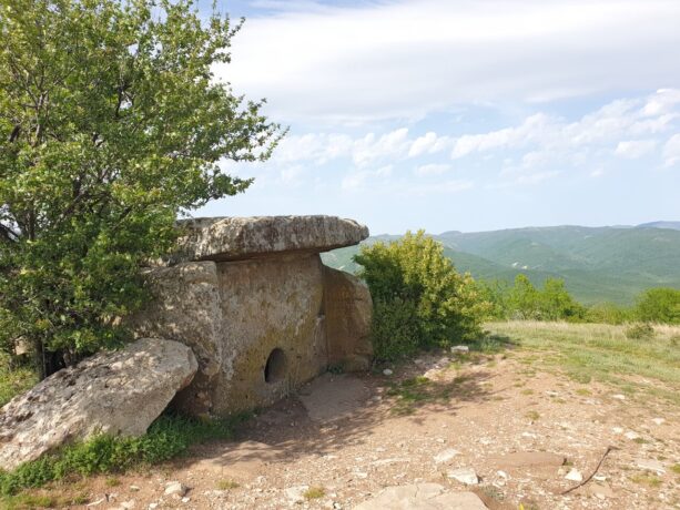Дольмен «Лунный» — памятник эпохи Бронзового века. Он построен из мегалитических плит и имеет Г-образную форму. Е нему принято приходить по вечерам, чтобы встретить закат и подумать о сокровенном. Посещение территории бесплатное. Туристы могут осмотреть памятник не только снаружи, но и изнутри. Некоторые, самые смелые, остаются с нем с ночевкой. Недалеко от достопримечательности находится поселок Светлый, в котором есть отели и гостевые дома. в них останавливаются те, кто хочет провести собственный обряд рядом с сакральными постройками. Между двумя дольмена построен лабиринт, загадку которого еще предстоит разгадать.