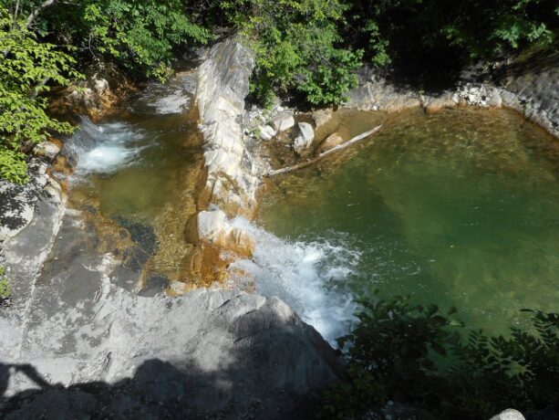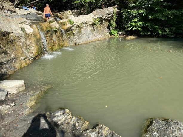 Чуть выше вершины просматривается протоптанная тропинка и размытые водой ступени. Там находятся еще 5 водопадов, которые летом можно назвать каплепадами, настолько они пересыхают. Но в сезон дождей и таяния снегов можно дойти и до них, чтобы иметь полное представление о местности. Воспользоваться лучше тропинкой, так как ступени поросли мхом и очень скользкие. В туристические маршруты эта тропа не входит. Ее проложили походники-исследователи, мечтающие открыть все водопады окрестностей Геленджика.