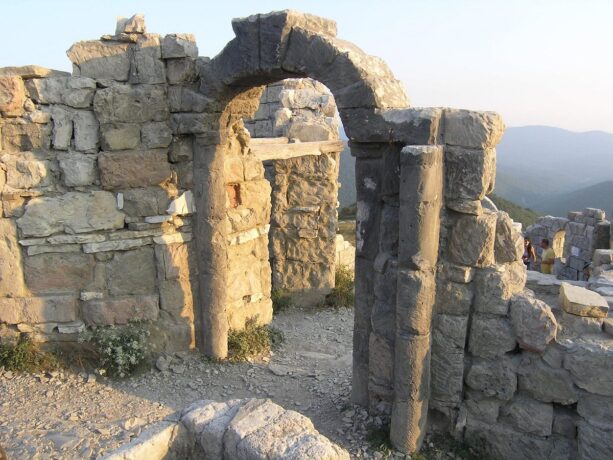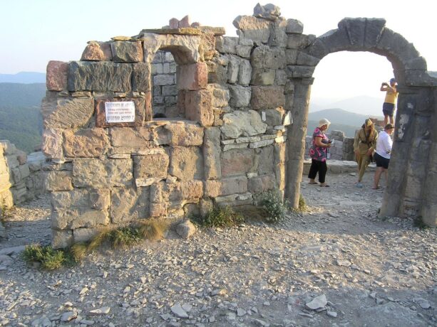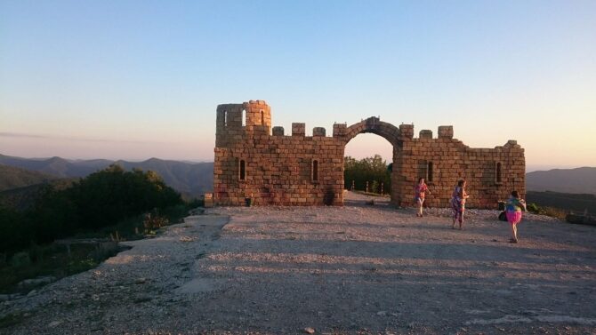 Для строительства декорации использовались пеноблоки, стилизованные под камни. Полуразрушенные стены изнутри украшены обрывками фресок с изображениями древних воинов, львов, восточных городов. Рядом с развалинами установлен монумент с красной звездой. Он не имеет к фильму никакого отношения. В 1919 году за эту высоту велись реальные бои между отрядом белогвардейских карателей и группой красных партизан. В память о павших героях в советское время был установлен этот обелиск.