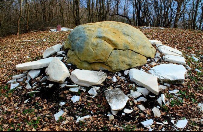Пуп Земли – это круглая площадка, расположенная на вершине горы. Внешне она напоминает каменный колодец, окруженный по периметру белыми камушками. На поверхности есть два углубления. В них бросают монетки на счастье и загадывают желания. На глыбе нет надписей, петроглифов и рисунков, что само по себе рождает массу вопросов о ее происхождении и предназначении.