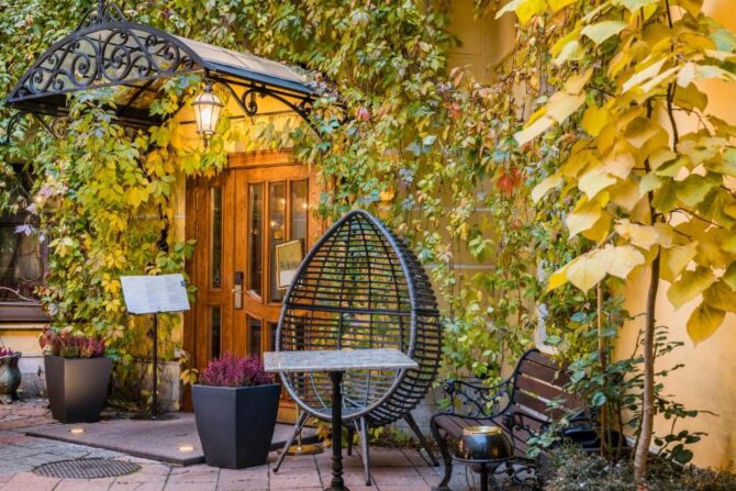 Войдя в уютный внутренний дворик, попадаешь в маленький уголок Швейцарии – в стиле этой страны выполнен внешний антураж. На рецепции гостя встречают услужливые сотрудники и предлагают комплимент: бокал шампанского, сок или минералку. Другая фишечка – меню подушек с выбором из 10 разных моделей, которые порадуют даже самую капризную знаменитость. В коридорах всегда пахнет фирменными ароматизаторами, а в номер приносят прогноз погоды на следующий день. Стоит добавить, что весь отель объявлен некурящей зоной.