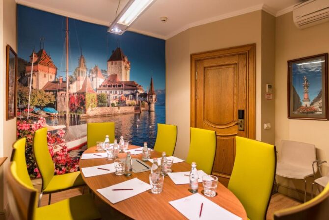 Конференц-зал «Базель» имеет площадь в 65 м2 и рассчитан на 80 человек. Оснащение включает настенный экран с LCD-проектором, микрофон, ЖК-панель и климат-контроль. После конференции можно заказать банкет в ресторане.