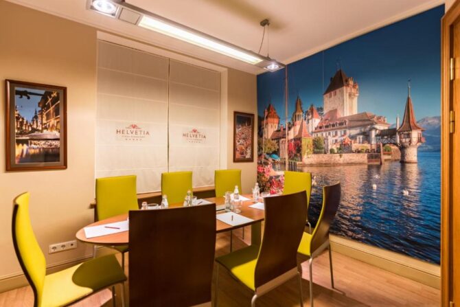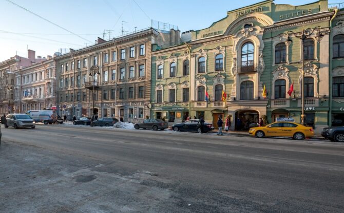 «Гельвеция» расположена в ста метрах от трёх станций метро красной, зелёной и оранжевой ветки. До Московского вокзала идти пешком 10 минут. Невский проспект находится буквально через дом. Вокруг множество ресторанов и баров: с итальянской, японской, узбекской кухней и т.д. Рядом три музея: Л.Н.Гумилёва, Ф.М.Достоевского, Арктики и Антарктики. Ну и конечно, необходимо упомянуть величественный Владимирский собор постройки середины 18 века, расположенный в 200 метрах. В котором исповедовал свои многочисленные грехи известный писатель, игрок и каторжанин – Ф.М.Достоевский.