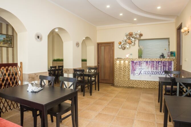 «Очень удобное расположение и крайне деликатный персонал. До Набережной идти всего 50 метров, до пляжа еще 50. Милые горничные убирают номера каждый день, а повар готовит на завтрак блюда из свежайших продуктов. Я знаю, что многие жалуются на крымскую еду, заветренную и приготовленную из оставшихся с вечера блюд. Это не про «Глицинию». Здесь ценят свою репутацию и не желают ее портить» Елена, Россия