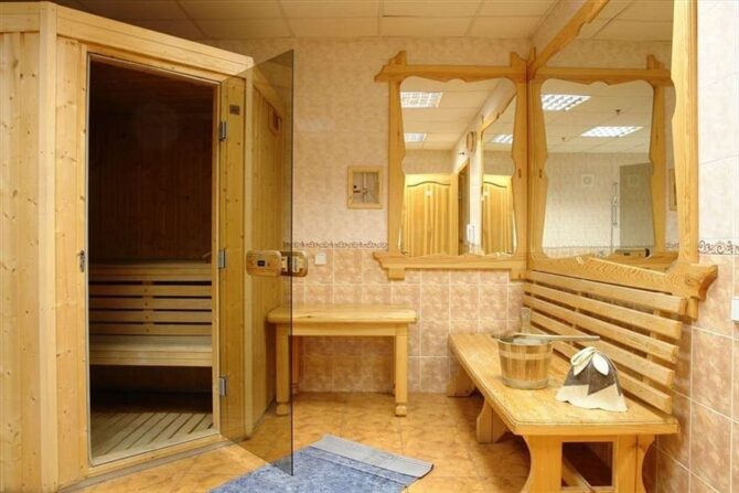 Ценителям пассивного отдыха понравится сауна, где можно оздоровиться душей и телом. Скорректировать фигуру можно в фитнес-центре во время занятий на тренажере.