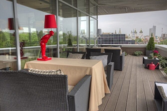 Отель отличается удобным расположением, так как находится в зеленой зоне Измайловского парка. Отсюда добираться до центра Москвы всего 15 минут, а в пешей доступности есть станция метро «Партизанская». Поблизости много супермаркетов и ресторанов быстрого питания.