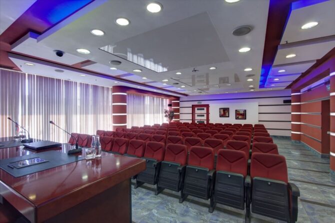 Мы уже говорили о том, что Альфа предназначена для деловых поездок, поэтому следует отметить наличие 9-ти конференц-залов, площадью 24 – 435 м2. Здесь можно разместить до 550 человек. 4 зала считаются трансформерами, так как по необходимости расширяются. Есть также комната переговоров для закрытой встречи.