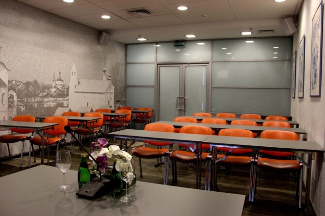 Для проведения бизнес-встречи вам предоставляется подключение к локальной сети, телефонной линии, настройка вашей аппаратуры, использование залов для предварительной подготовки. Стоимостью аренды предусмотрена перестановка мебели по требованию заказчика.