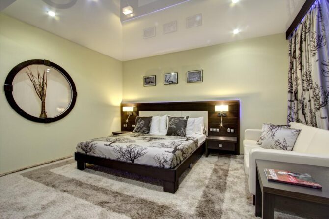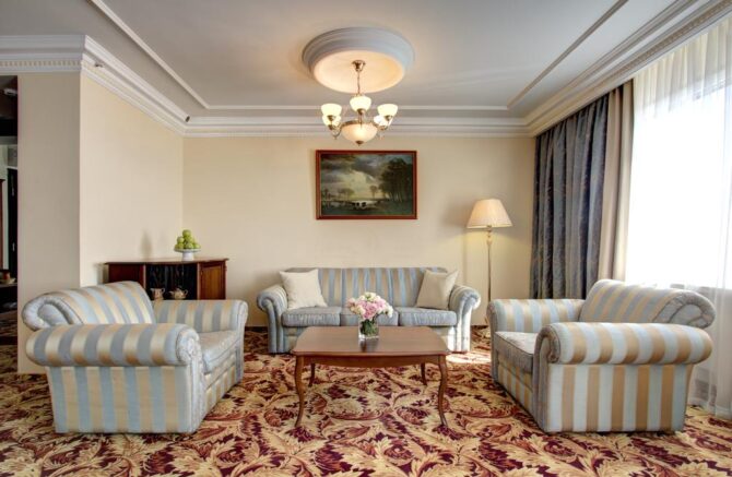 - Стандарт, супериор, 2-х комнатный «Комфорт» и люкс оборудованы мини-холодильником, мини-баром, телевизоров, беспроводным интернетом, телефоном, радио, феном, индивидуальным сейфом и кондиционером с функцией нагрева и охлаждения.