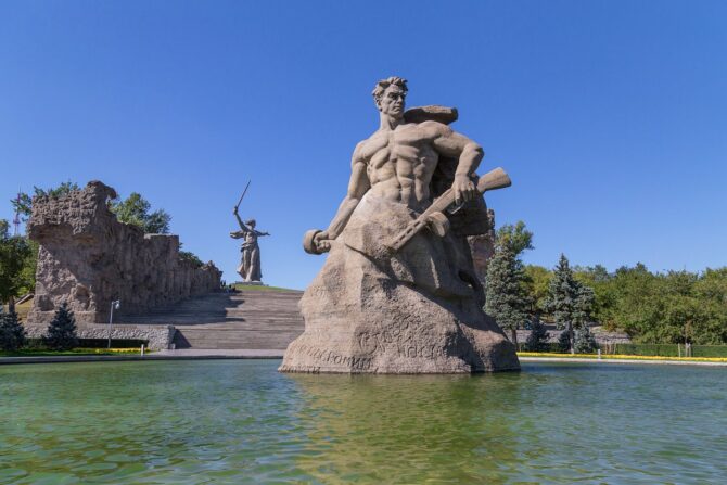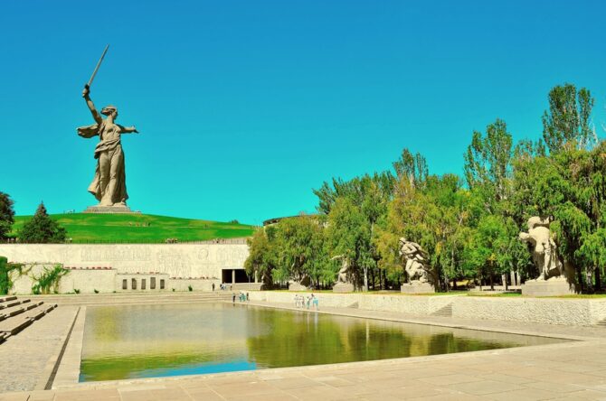 Памятный мемориал павшим воинам расположен в центре города, на правом берегу Волги. Именно это место стало тем рубежом, который не смогли пройти немецкие захватчики. Ожесточенные бои за высоту 102.0 велись почти полгода — с сентября 1942 года по январь 1943. Если бы фашистам удалось занять эту высоту, Сталинград был бы потерян. Но выручила зима, которую немецкие войска переносили гораздо хуже, чем русские красноармейцы. Курган буквально пропитан кровью солдат, поэтому именно здесь возвели памятный мемориал «Героям Сталинградской битвы».