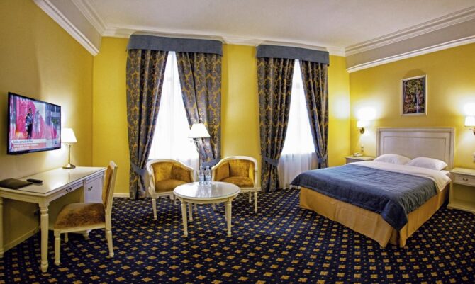 В каждом номере есть доступ в интернет, многоканальная ТВ-система, кондиционер, мини-бар, сейф и принадлежности для чаепития. Номера обставлены эксклюзивной мебелью из натурального дерева, произведенной в Италии. Кровати оснащены ортопедическими матрасами, свежим бельем, удобными подушками и одеялами.