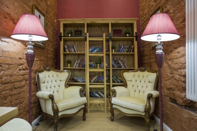 - Любой гость отеля может бесплатно воспользоваться комнатой отдыха, где можно перекусить или попить чаю, выйти в интернет, почитать книгу и просто отдохнуть. В наличии 2 удобных кресла, барная стойка со стульями, кулер, книги и wi-fi;