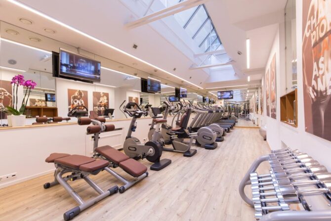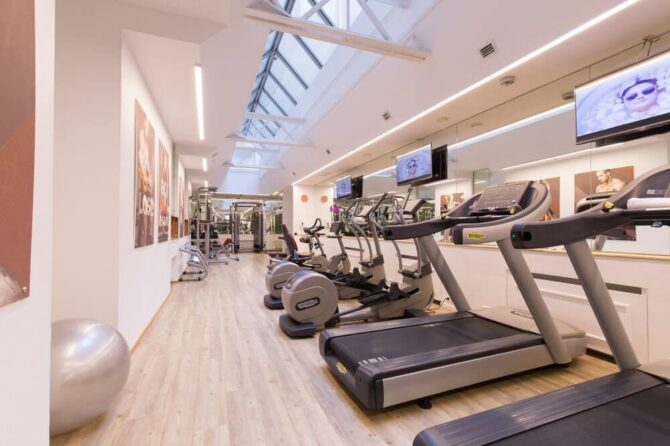 В стоимость проживания входит посещение СПА-зоны и тренажерного зала. В помещении для фитнеса установлены современные кардио и силовые тренажеры, можно заказать занятия с инструктором по йоге. В сауне установлена купель и гидромассажная ванна. К услугам гостей – массаж, косметологические процедуры, маникюр/педикюр, парикмахерская, визажист.