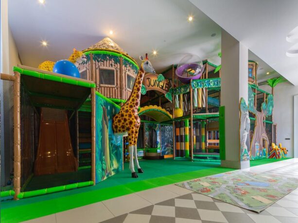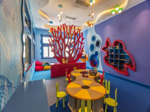 Если у вас маленький ребенок до 3-х лет, вам пригодятся услуги няни. Они оплачиваются отдельно, зато вы сможете насладиться свободным вечером, не беспокоясь о подгузниках и пеленаниях. Детей постарше займут аниматоры. Они предложат вашему чаду увлекательные игры и шоу, которые одновременно разовьют интеллектуальные и физические способности. Вы хотите провести время весело вместе с ребенком, вашему вниманию представлен неглубокий бассейн, аквапарк, игровая площадка с автоматами, батутами и другими приспособлениями для интересного досуга. Есть даже детский клуб, где ребята школьного возраста смогут найти друзей.
