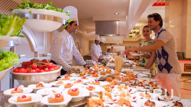 Что насчет питания? По вашему требованию вам принесут завтрак в номер или составят специальное меню в соответствии с диетой. Но вы можете и самостоятельно спуститься в ресторан и полакомиться блюдами разных стран мира. Возможен заказ по меню или выбор со «шведского стола». Кроме этого для вас работает снэк-бар с большим выбором закусок и напитков. Провести время с друзьями или посмотреть важный футбольный матч вы можете не только у себя в номере, но и в одном из 15 баров.