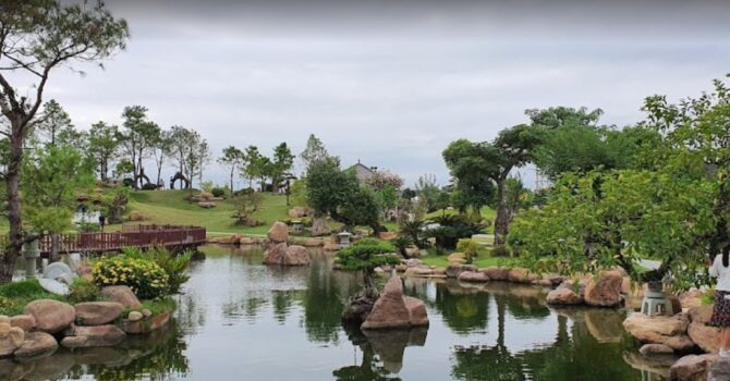Территория парка Big Sun украшена альпийскими горками и мостами через пруды и маленькие речки. Вечером все выглядит очень красиво и романтично при свете фонарей.