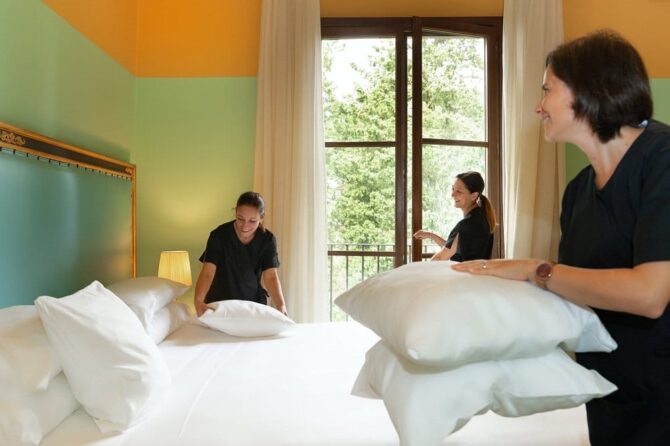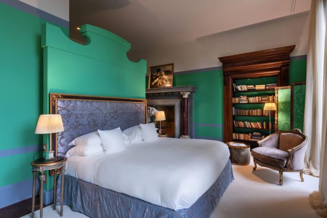 Пятизвездочный отель Il Salviatino находится в 15 минутах езды к северо-востоку от центра Флоренции. Вилла, построенная в 15 веке, стоит на высоком холме, откуда открывается прекрасный вид на город. Виллу окружают традиционные тосканские пейзажи, здесь царит атмосфера покоя и умиротворения. Номерной фонд отеля относятся к категории DeLuxe и апартаменты. Самые маленькие из номеров имеют площадь 28 кв. м, площадь апартаментов достигает 110 кв. м. Все номера оснащены доступом в интернет, новейшими телевизорами и аудиосистемами, кофе-машинами Nespresso и другим оборудованием. Мебель – антикварная или изготовленная на заказ.