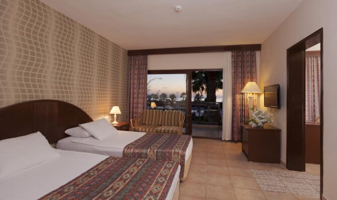 Наталья, Москва: «Можно сказать, что нам повезло, из окон прекрасный обзор на море. Хотя мебель, явно, не очень новая, но все чистенько, без огрехов. Когда с мужем выбирали путевку мне сразу понравилось, что здесь очень обширный пляж. Он как бы огибает отель с двух сторон – есть где погулять. А то бывает, что территория большая, вроде первая линия, а до моря устанешь идти. Правда, ближе к воде на берегу в основном галька, она хоть и мелкая, но ходить по ней удовольствия не доставляет, так что сразу запасайтесь тапочками для кораллов. Недалеко от берега есть маленький островок для любителей уединения. До него можно спокойно доплыть, если море спокойное, но без тапочек туда лучше не соваться.