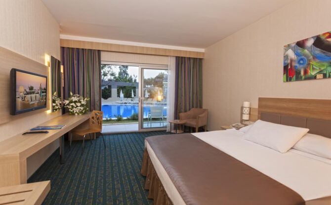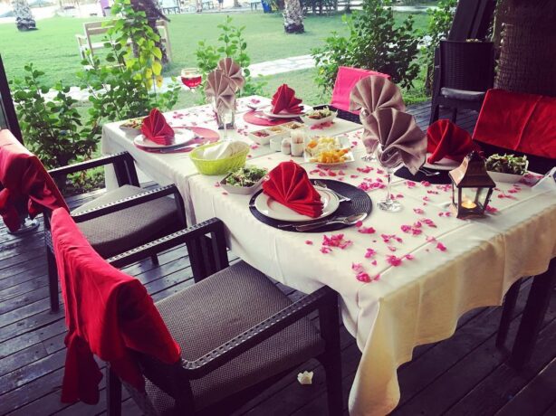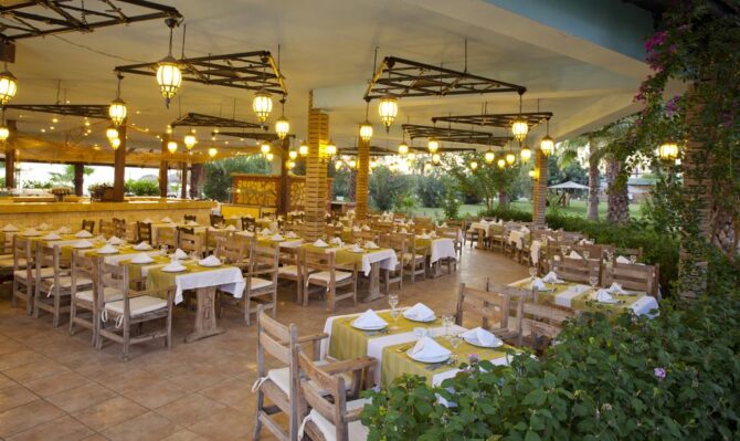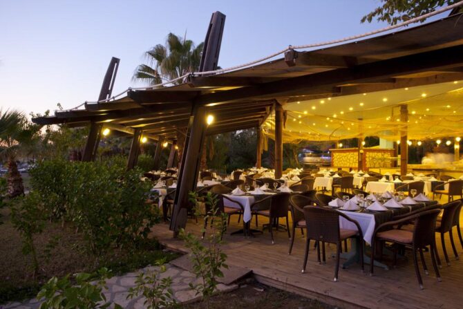 На территории есть две закусочных – на пляже и у бассейна. Есть также 3 A la Carte ресторана. Один из них предоставляет разнообразные рыбные блюда, другой специализируется на итальянской кухне, а в третьем можно познакомиться с традиционными турецкими специалитетами. Проживающие в отеле имеют право на бесплатное посещение ресторанов A la Carte по предварительной записи. При отдыхе 7 дней один ресторан, 10 дней – 2, а 14 дней – 3.
