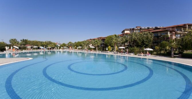 Владения комплекса занимают 90 000 м2. На них уютно соседствует главный корпус на 5 этажей, семиэтажный Moonlight, дополнительное здание на 7 этажей и 7 трехэтажных коттеджей. Для приема пищи есть главный ресторан, 3 ресторана Ala Carte, 5 баров и кондитерская. Много зеленых насаждений, шезлонгов и столиков, уютных уголков для уединенных прогулок и отдыха делает это место приятным для тех, кто предпочитает спокойствие и тишину. Обширная собственная пляжная полоса позволяет получать солнечные ванны, не испытывая стесненности.