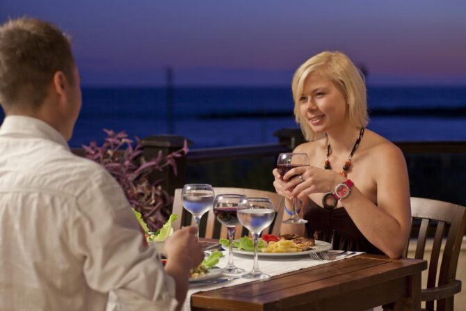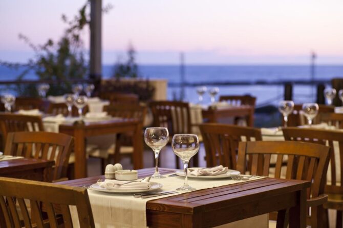 Основной ресторан внутри помещения с кондиционером рассчитан на 300 отдыхающих. Имеется также открытая терраса на 600 посетителей. К услугам проживающих здесь имеются детские кресла, блендер и микроволновая печь.