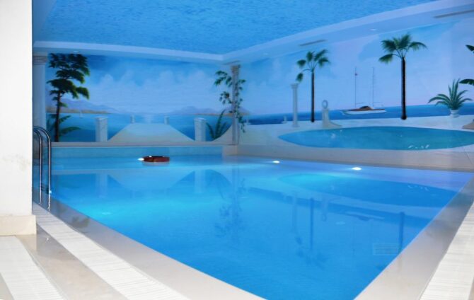 Функционируют два открытых бассейна, две водные горки, которые функционируют только летом. Зимой можно поплавать в крытом бассейне без подогрева, его площадь составляет 70 кв. м.