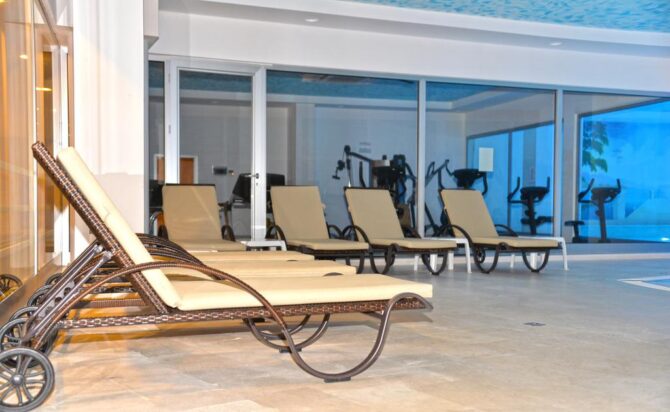 В отеле работает джакузи, хамам, сауна, турецкая баня. Сеансы массажа и походы в SPA-салон платные. Заняться спортом можно в бесплатном тренажерном зале. Также без дополнительной платы предоставляется возможность поиграть в настольный теннис, пляжный волейбол. Водные виды спорта, развлечения на воде, серфинг, виндсерфинг, дайвинг, бананасейлинг, доступны за определенную плату.