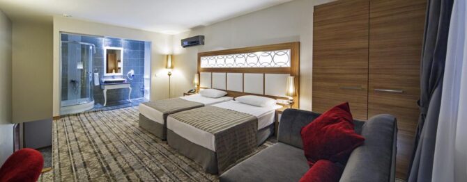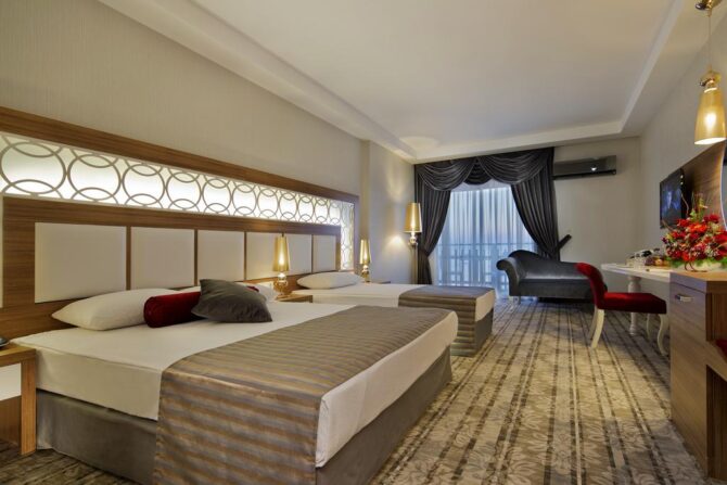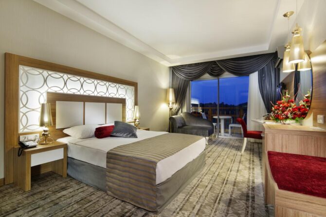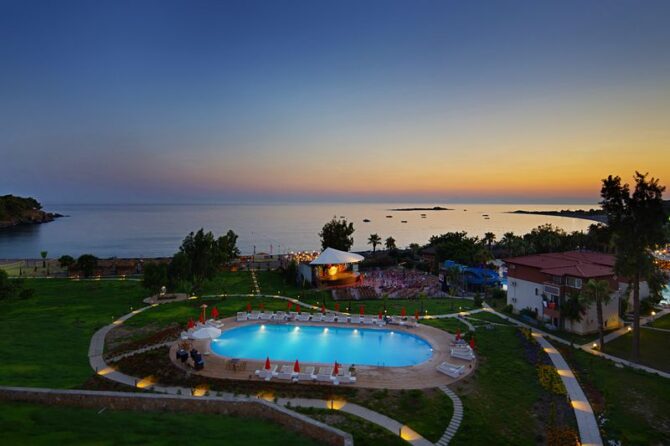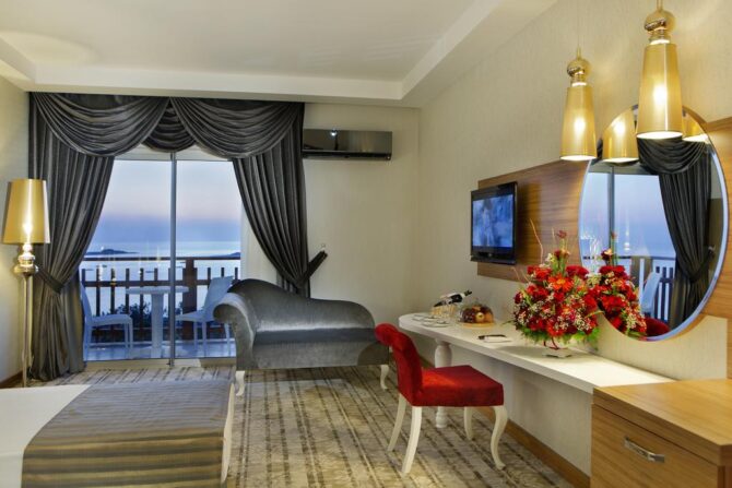 Justiniano Deluxe Resort 5*– роскошный отель в Окурджаларе, милом курортном поселке, который приглашает всех желающих насладиться роскошной природой, теплым морским побережьем, красивым и комфортным пляжем. Сюда приезжают отдыхающие из разных стран, которые ценят хороший сервис, хотят забыть о насущных проблемах, привыкли наслаждаться отдыхом в полной мере и пользоваться возможностями категории «все включено».