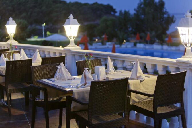 Есть возможность по предварительной регистрации посетить раз в неделю рестораны a la carte/шведский стол: рыбный или турецкий (входит в стоимость тура). Они открывают свои двери вечером с 19.00 до 21.00. Эти заведения функционируют в период с мая по октябрь.