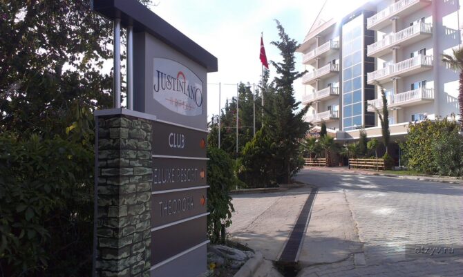 Открытие этого курорта состоялось в 2012 году. Общая площадь составляет 9 500 кв. м. Он входит в группу Justiniano Hotels, состоит из двух больших корпусов: основного семиэтажного и дополнительного на 5 этажей, под названием «Теодора». Выполнен он в римском стиле, выглядит помпезно и захватывающе. Каждый, кто сюда приезжает, может почувствовать на себе магию истории, культуры, быта Древнего Рима.