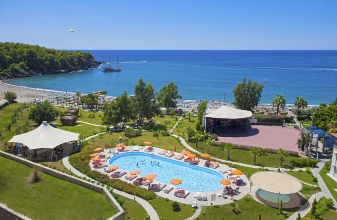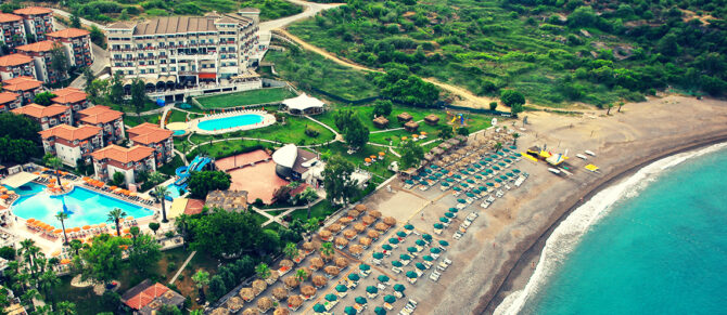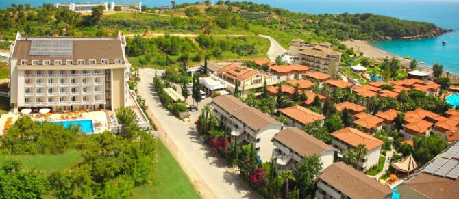 Отель расположен в живописном месте в 35 километрах от центральной части города Анталия. Добраться от аэропорта Анталии можно за 1,5–2 часа, общее расстояние составляет около 80 км. Природа, которая окружает это курортное местечко, восхитительна. Здесь много зелени, чистый морской воздух, прозрачная и теплая морская вода.