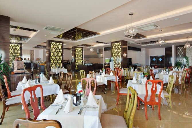 В Deluxe Resort функционирует основной ресторан. Предусмотрен поздний ужин. Диетическое питание, еда для вегетарианцев дополнительно не оплачивается. Днем можно посетить Снэк-бар, чтобы полакомиться холодными закусками.