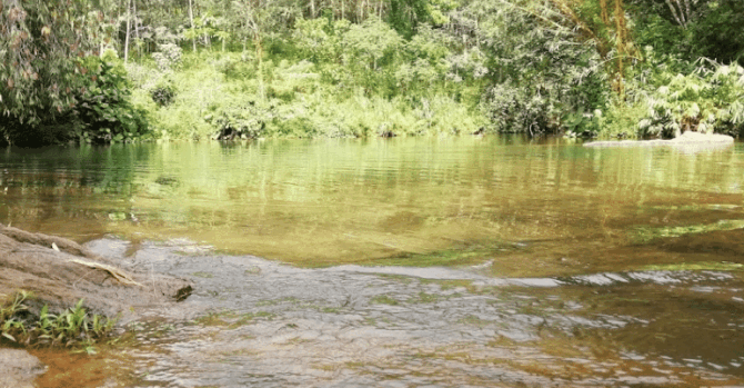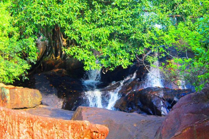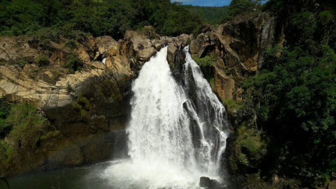 Водопад имеет два этажа. Верхний этаж водопада спрятан среди деревьев, а нижний открыт. Вода на верхнем водопаде, из-за своего расположения между деревьями, выглядит темной, но на самом деле она кристально чистая. Можно дойти до вершины водопада, но эта часть очень скользкая. Также здесь есть большие пещеры, поэтому нужно быть очень осторожным при прогулке. У входа на первый этаж водопада можно увидеть, как стекает верхний водопад. Здесь водоем шире, поэтому водопад выглядит как поток белой пены.