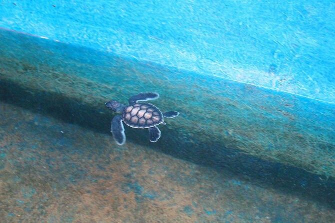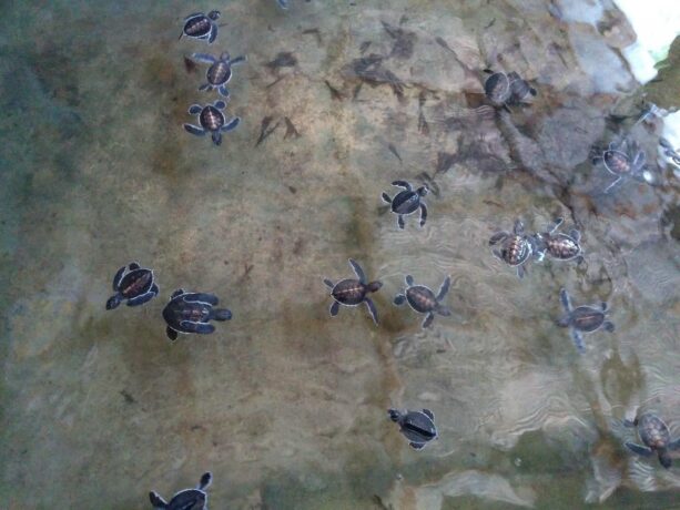 После рождения черепахи некоторое время плавают в резервуарах с водой, а затем их торжественно выпускают на волю, в океан. Посмотреть на молодых черепах, полюбоваться на некоторых взрослых, прижившихся рядом с людьми, и можно на черепашьей ферме в Косгоде.