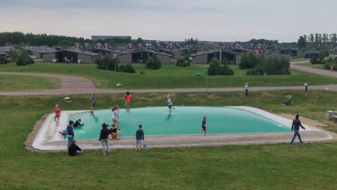 - Аквадом — это сердце Лаландии. Он ориентирован на маленьких посетителей. Экстремальных горок здесь нет. Зато есть «ленивая река» с водопадами и порогами, три детских бассейна с полосой препятствий в виде плавучих импровизированных листьев гигантской кувшинки, бассейн – баскетбольный стадион. Некоторые бассейны расположены одновременно и под крышей, и на открытом воздухе. На многоярусных разноцветные горках можно спускаться как по одиночке, так и всей семьей на двух или четырехместном надувной «ватрушке». В аквазоне царит атмосфера тропического острова: пальмы, шезлонги, струящиеся меж скал ручейки, гроты. Есть даже хижина рыбака. Аттракционы парка безопасны для семейного отдыха и подходят даже для самых маленьких посетителей. Температура в бассейнах комфортна для купания и длительного пребывания в воде. Детям понравится также зона, где самостоятельно можно включать и выключать фонтанчики и разбрызгиватели.