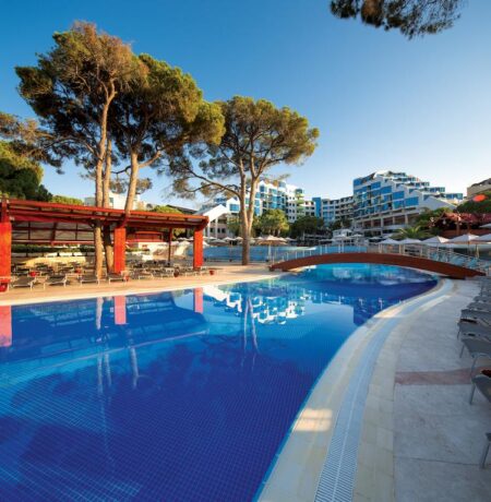 Cornelia De Luxe Resort расположен в курортном городе Белек на берегу Средиземного моря. До центра Антальи следует добираться 45 км, а до аэропорта – 35 км. Благодаря специальному трансферу вы не ощутите дискомфорт от поездки, и доберетесь быстро в пункт назначения.