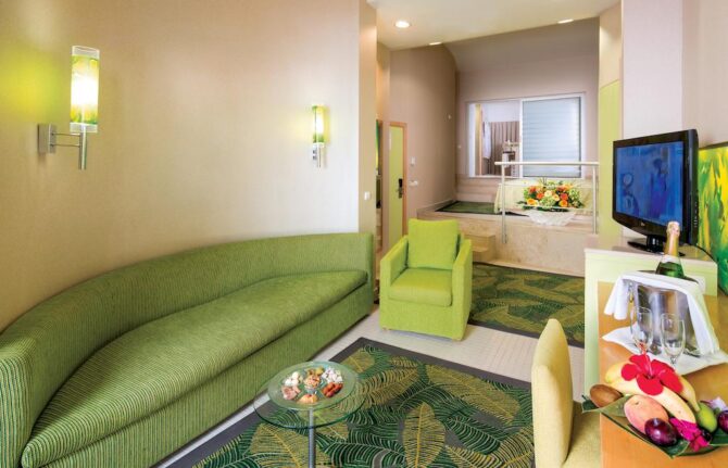 - Люксы Де Люкс идеально подходят для проживания влюбленных пар. Вам предоставят эксклюзивные VIP услуги и джакузи на террасе с видом на море.