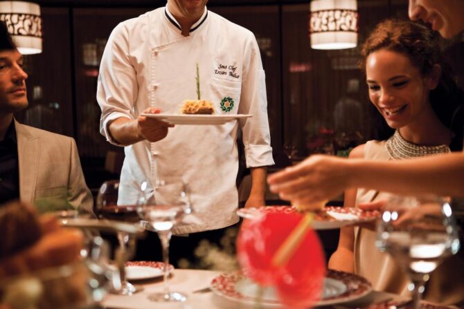 Кроме этого вы всегда можете утолить жажду в одном из восьми барах. По концепции все напитки местного и импортного производства подаются в бокалах.