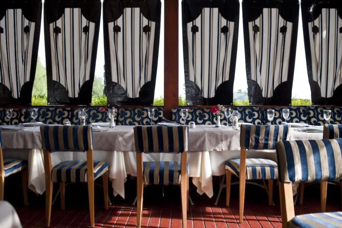 - В Daphne вас ждут на обед, полдник и поздний ужин. Официанты предлагают большой ассортимент закусок и фастфуда. Предварительная резервация не нужна.