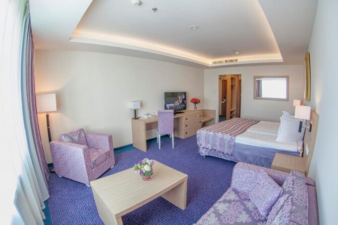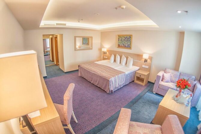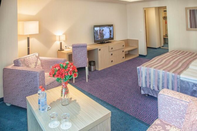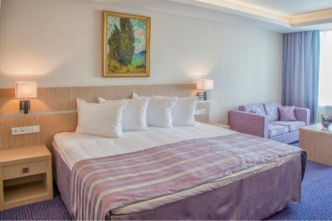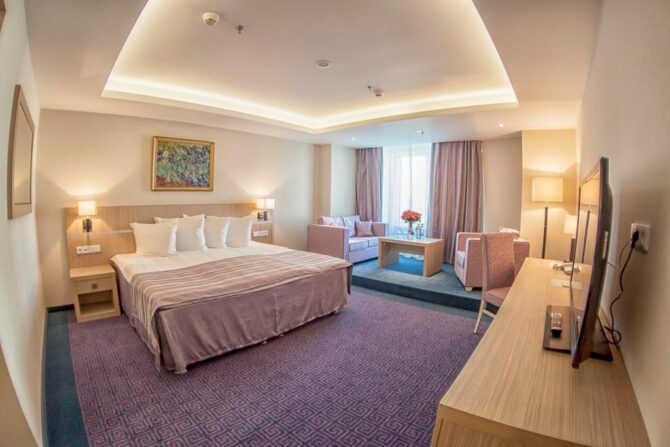 - Suite – улучшенные апартаменты с прихожей, спальной и рабочей зонами. Постели застелены гипоаллергенным бельем для комфортного сна.